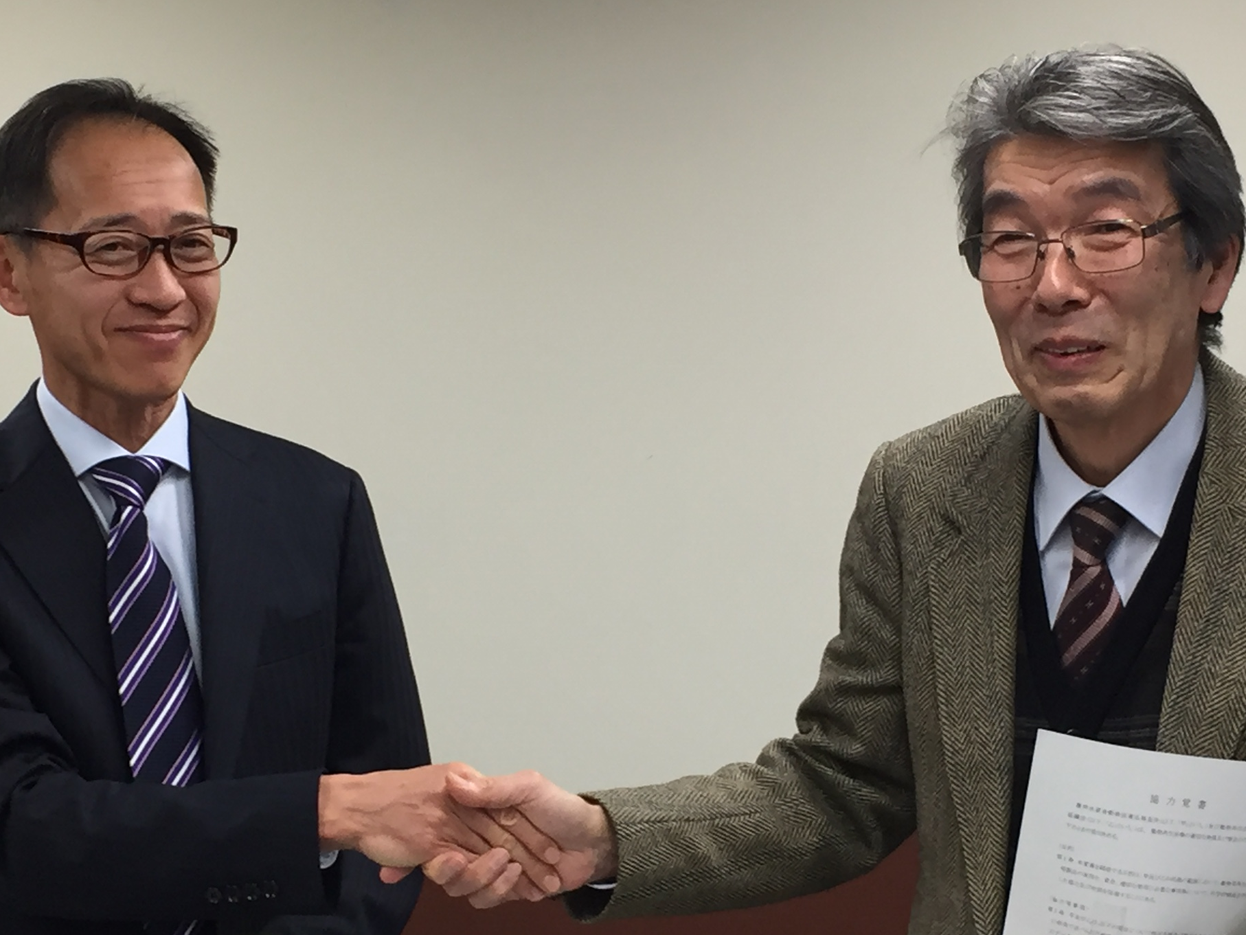 ~握手を交わす動物医薬品検査所の小原所長(写真左)及び 当会濵岡副理事長(写真右)~